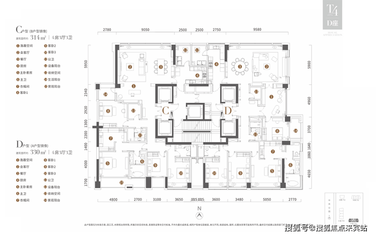 【T7-01户型鉴赏】约393㎡四房三厅六卫
