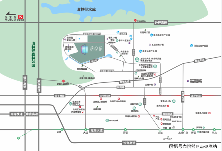 项目距外环高速五联出入口车行距离约1.2KM,快速畅达龙华、宝安、光明等中西部核心区。自配建面约2.4万平方米漫步式街区,商业休闲配套尽汇;更邻约28平方公里清林径森林公园,三水库十二大公园天然绿肺簇拥环伺,森氧诗意生活;万科千林山居健康服务中心、龙岗区人民医院、龙岗妇幼保健院等医疗配套齐全,为家人365天健康护航。