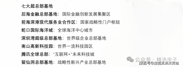 -七大全球总部基地,激荡全球资本的湾区超核,由总部经济带串联,吸引大批诸如腾讯、大疆、阿里巴巴等行业龙头企业,以及大批总部企业入驻,未来将吸引260万人才聚集。