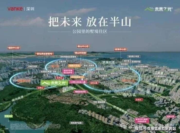 万科未来之光项目是万科联合人才安居集团打造的超30万㎡的理享生活大城。 未来之光项目直线距离前海不到6.5公里,受“南山+宝安”双核心辐射。从项目出发,开车仅半小时可到达深圳最主要的工作区域:宝安中心、留仙洞、南山科技园、前海后海、车公庙、福田CBD等。步行可达地铁5号线兴东站,规划中的地铁15号线被称作“深圳一环”,涵盖了会展新城、海洋新城、太空港片区、铁仔山科技城、宝中及大铲湾、前海核心区、留仙洞总部基地、尖岗山高新园、蛇口片区等大湾区乃至国家大力发展的产业片区。
