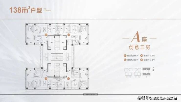 天宸138㎡户型,四梯四户,专梯入户,整个框架可以灵活打造,大面积没有承重墙和承重柱,可以随心设计自己的家。电梯厅加厨房,外部连廊加半个阳台算赠送面积,所以空间利用还算挺高。