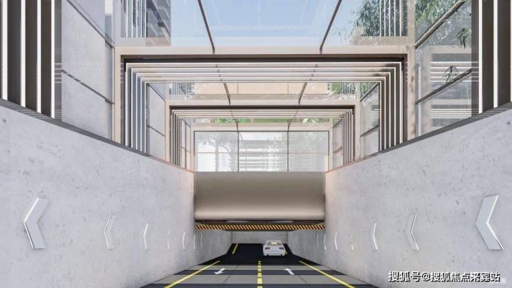 9、【时尚车库空间】玻璃雨棚为序,辅以灯光廊道,塑造具有秩序感的入口空间效果,尊享归家礼序