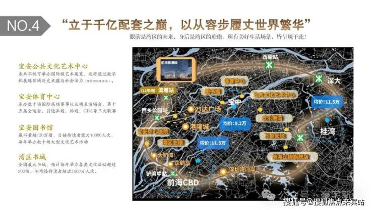 🎡 近距西乡会堂,紧邻宝安体育中心、毗邻欢乐港湾、宝安区公共艺术中心(在建中,含博物馆、美术馆、艺术馆)、湾区书城、宝安区图书馆等。