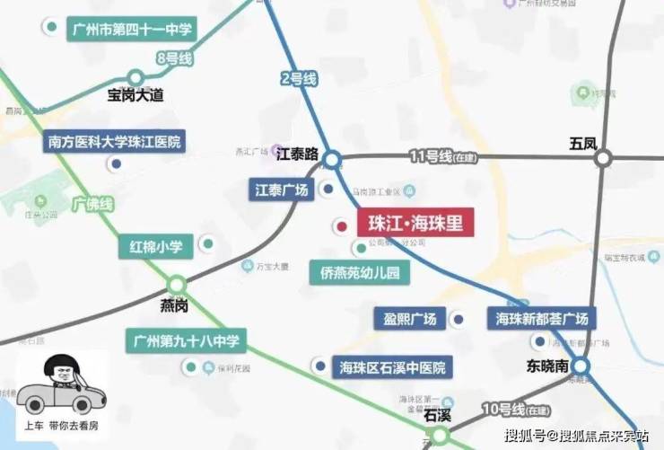 我们数了数,已运营的2号线、8号线和广佛线,加上在建中的10号线、11号线,项目周边就有5地铁环绕,地铁线网非常丰富,出行很便利。