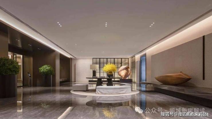 💎入户大堂 尊崇礼遇顶奢酒店式入户大堂,石材铺装,打造尊崇的三重归家礼序,开敞阔绰奢豪,点缀多元艺术美陈。