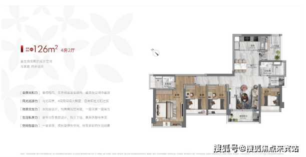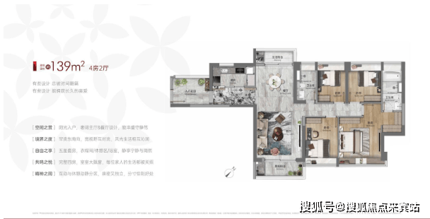 整个项目只有6栋楼,半围合式分布,45度“风车”户型联排,做到不同的户型的主要室内空间都朝南向排布,尤其卧室空间,几乎做到了100%朝南。