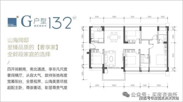 132㎡5房2卫:竖厅南北通,客厅开间3.8米主卧3.5米,对比116尺度基本一样,主要就是多了一间房。
