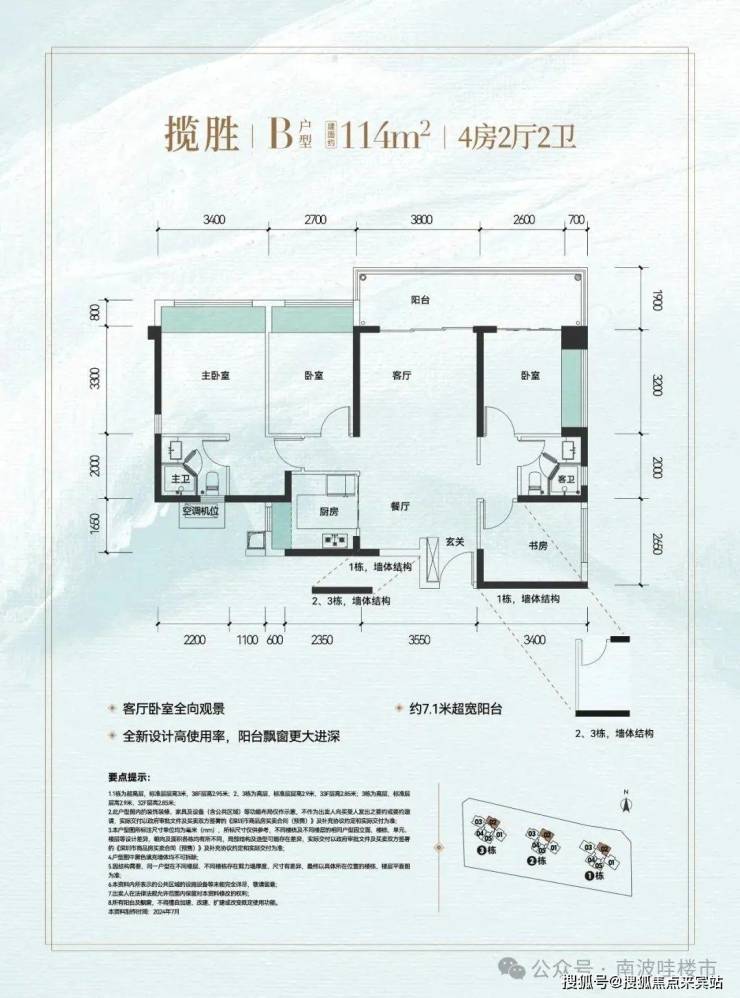 114平双龙抱珠户型,7.1米超大阳台,270°景观面看科学公园一线景观