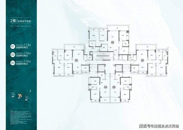 总层高33层(非超高层),两梯五户,建面约113和114平两种户型