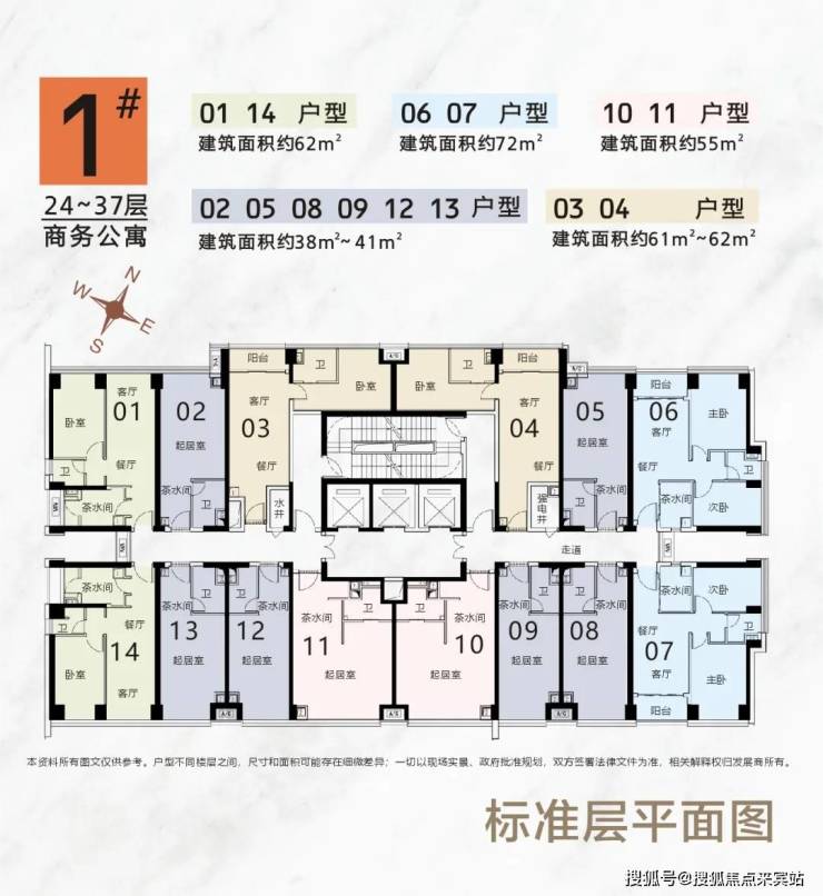 约38-63㎡多种户型,最多5.4m大面宽设计;