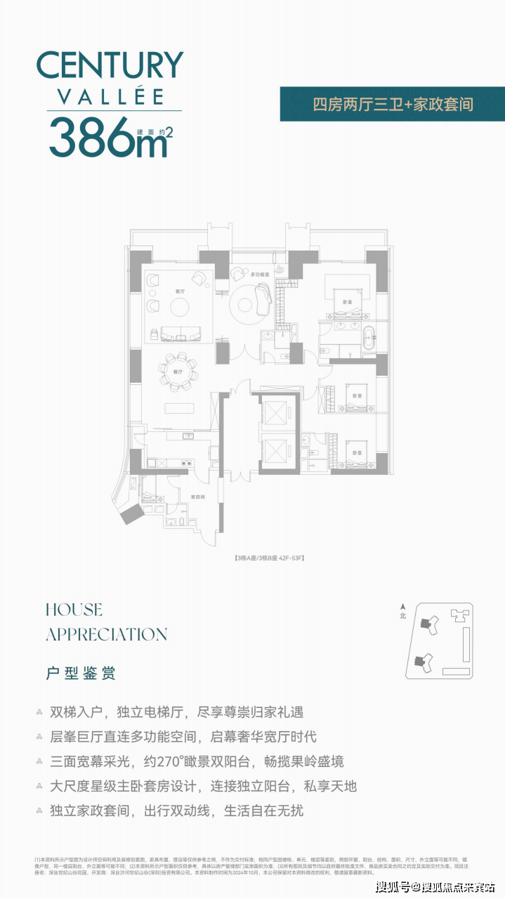 约280㎡4+1房4卫 B户型,西南朝向看城市景观,高层可看深圳湾海景;