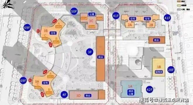 总栋数:8栋(一期:1A栋42层酒店+公寓、1B栋28层保障房,2栋1/2单元41层回迁住宅;二期:3A/3B栋67层住宅;3C栋50层公寓、3D栋4层公寓)。