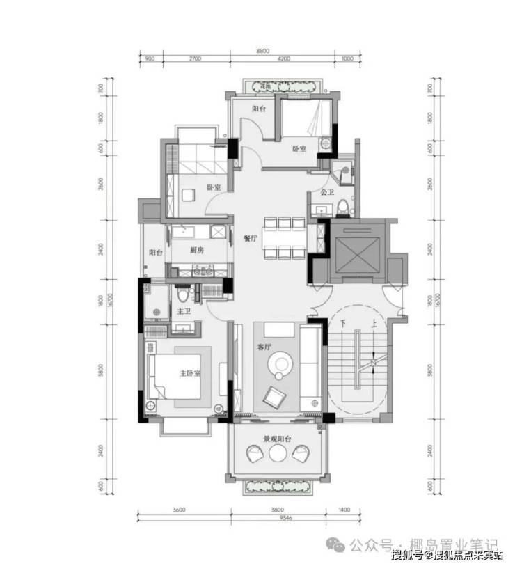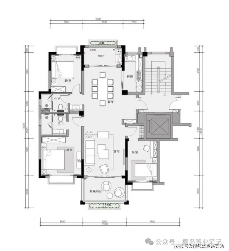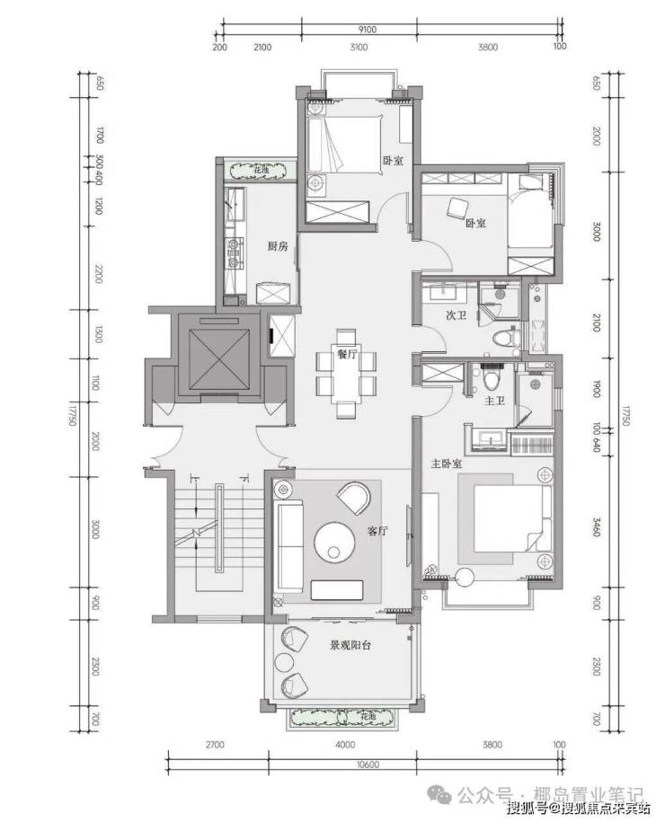 1、A户型:建筑面积约110平方米三房两厅两卫