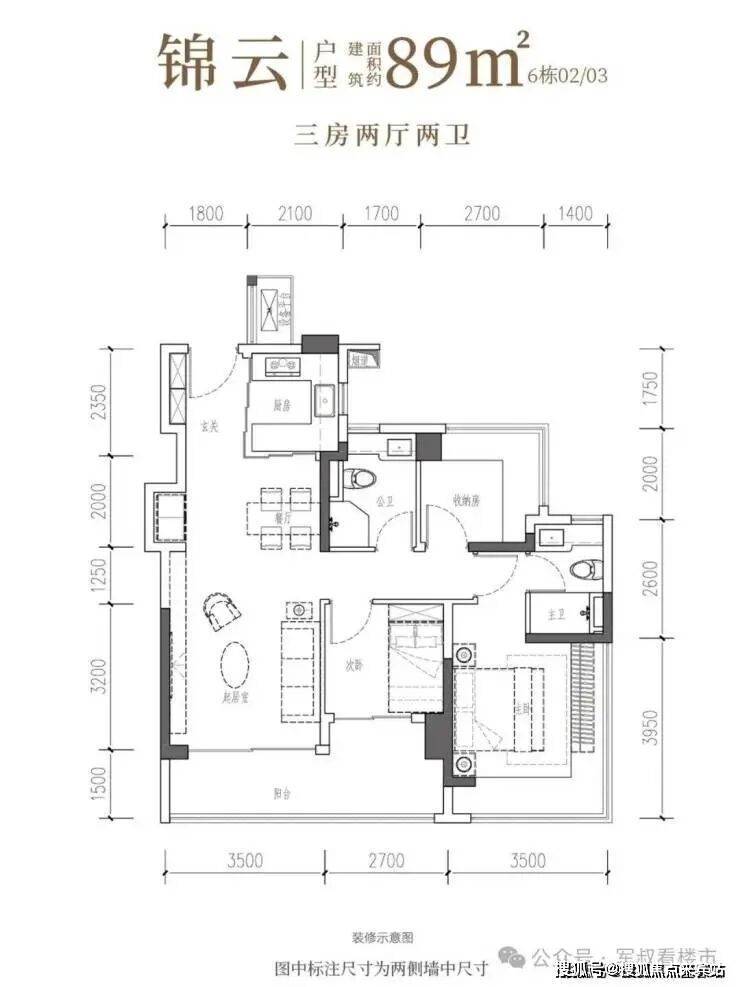 以LDKB无界场域盛放温情,以阳光长廊安放志趣,更以270°环幕主卧,升华为奢适的私密天地。• 锦云·建面约89㎡3房2厅2卫:南向阔厅,景致常驻,间间开阔,尺度舒适