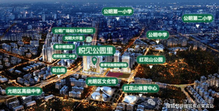 宏发悦见公园里,位于光明区公明街道松白路与红花中路交汇处,该片区属于公明最核心的区域,背靠红花山公园,一路之隔对面是大仟里购物中心,西侧是红花山体育中心,光明区图书馆(红花山分馆),6/13号地铁线双地铁口物业,分别是”红花山站","公明广场站"。