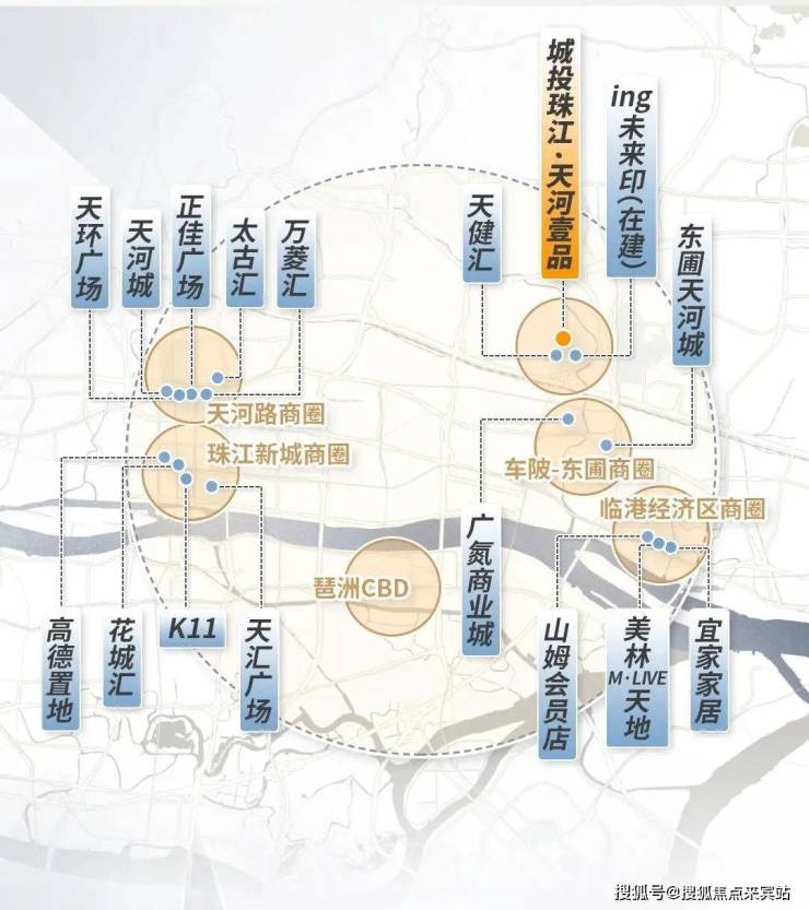 4大商圈:珠江新城商圈、天河城-太古汇商圈、金融城商圈及东圃-奥体商圈环伺。约50米天河智谷科技金融产业园(建设中),将打造集购物中心、大型生鲜超市、巨幕影院、美食餐饮、健身房及恒温标准泳池等为一体的城市商业综合体。