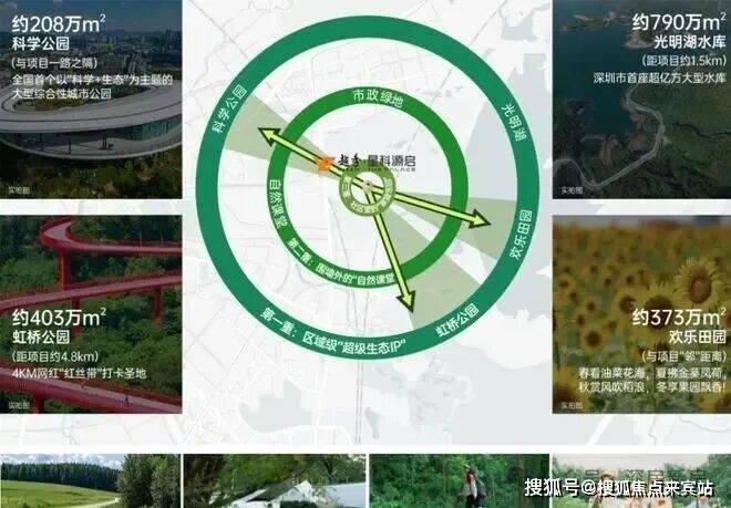 【三园一湖】近拥约2000万m²光明生态廊道,科学公园南北双翼,欢乐田园、光明湖等“三园一湖”环绕,生活与自然无界,走进四季变幻的生态画卷中。