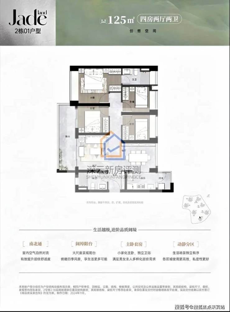 项目一期2栋已经拿到预售证,推售面积96㎡三房两卫和125㎡四房两卫户型,总共54套,2栋主要是回迁!