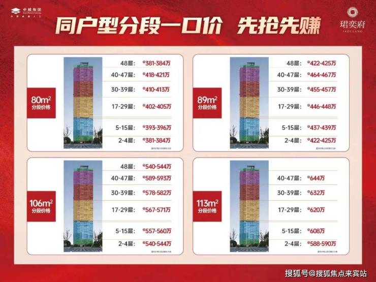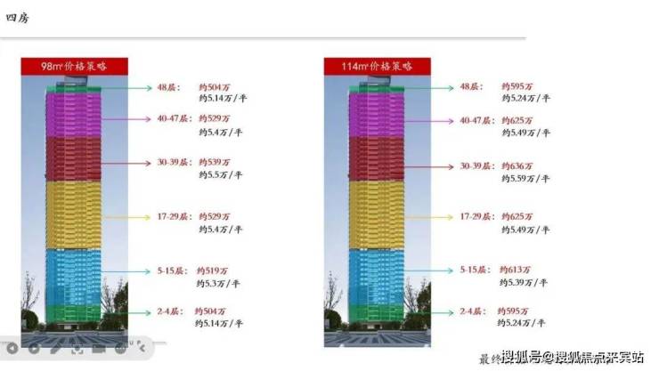 备案均价5.89万/㎡,开盘折扣约87.6折,折扣体系:0.97*0.95*0.98*0.98*0.99,折后均价5.16万/㎡。单价区间4.73-5.59万/㎡,折后总价: