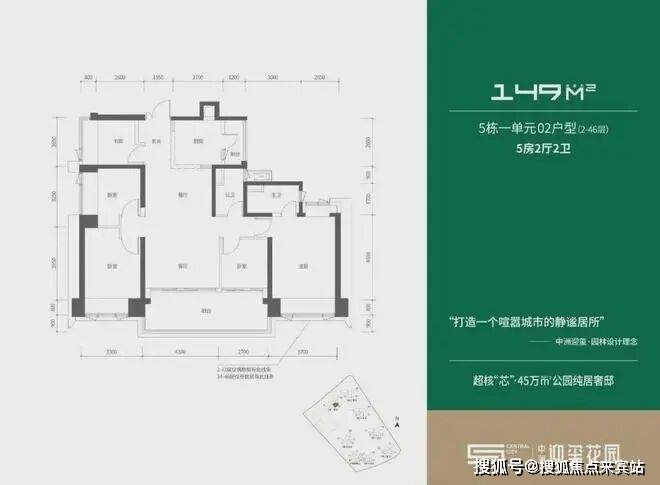 约149㎡的户型做到了双龙抱珠,聚气藏风使用