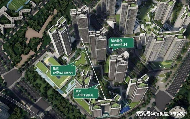 【奢阔楼间宽距】近160米超宽楼间距,最大化楼间距保证了视野的开阔度和充分的通风采光,车位比1:1,区域内最低容积率约4.24,片区稀缺2梯4户/2梯5户/3梯4户/3梯3户,高私密性,高舒适性。