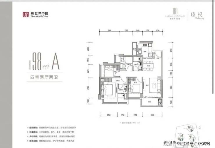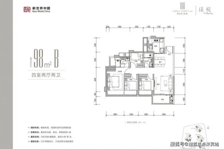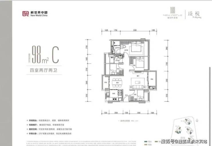- 98㎡四房两卫:总价328万起,刚改家庭友好,双卫设计避免早高峰抢厕所,一步到位满足四口之家。