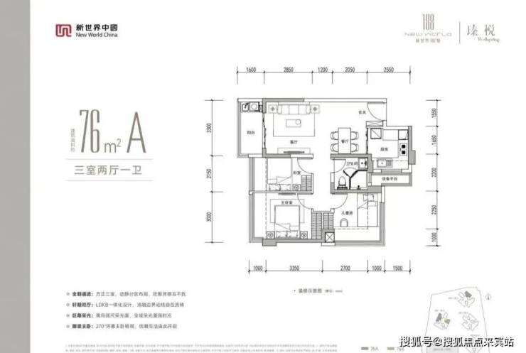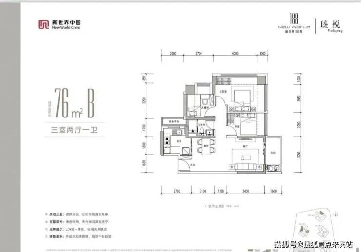 2. 新规高得房率,76㎡做三房,空间零浪费