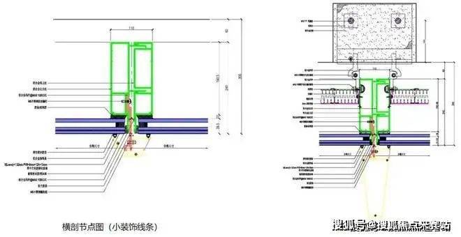 ▲ 酒店裙楼折线玻璃幕墙系统节点图