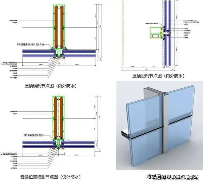 酒店的屋顶幕墙作为悬挑装饰性幕墙,附属在主体结构上,由于上部空间的完全开放,因此需要幕墙系统具有内外防水的特性。