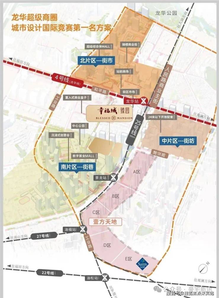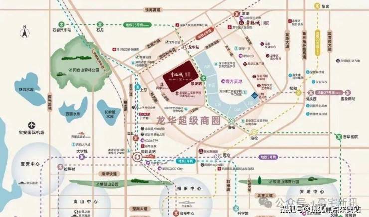 项目占位龙华超级商圈几何正芯,龙华商业中心城市更新北片区,傲踞天赋C位地块。
