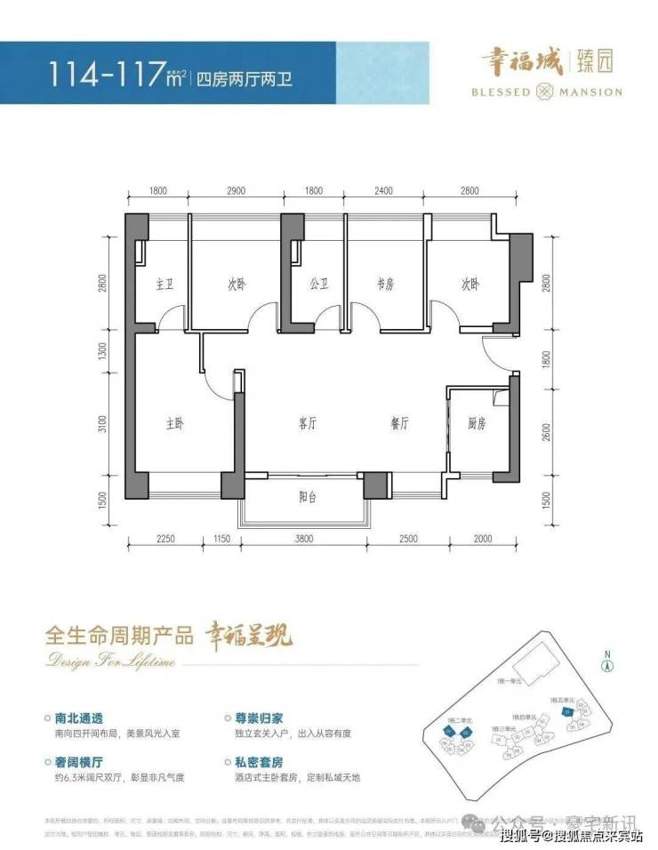 建面约114-117㎡4房2厅2卫(横厅)