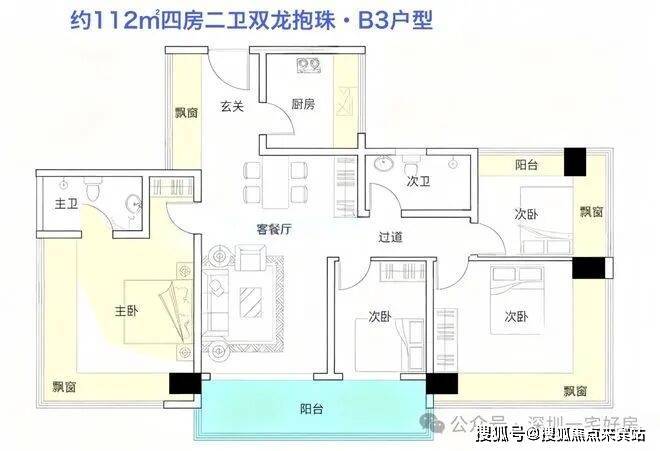 B3户型|112㎡ 4房2厅2卫(满赠双龙抱珠版)