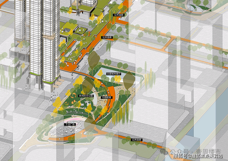 创新功能包括:架空层植入泳池与全龄活动区、避难层改造为观景会所、高空连廊嵌入社交空间。塔楼顶部规划直升机停机坪,地下车库预留智能驾驶车道,实现地面至空域的立体通行。商业底商设计为玻璃格子街铺,类似深圳湾1号,引入轻奢品牌。项目还融入生态连廊系统,连通人才公园及周边配套,并采用分级管控策略:内部庭院封闭管理,外围与城市融合。