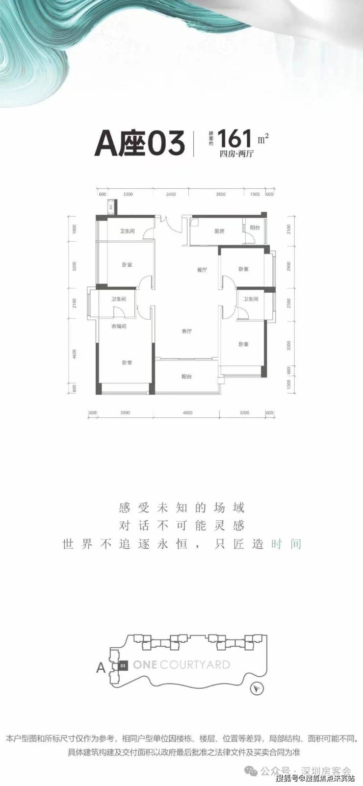 小区161平4房2卫仅分布在A栋03户型,东南朝向,经典双龙抱珠户型,套内面积130平,得房率81%。