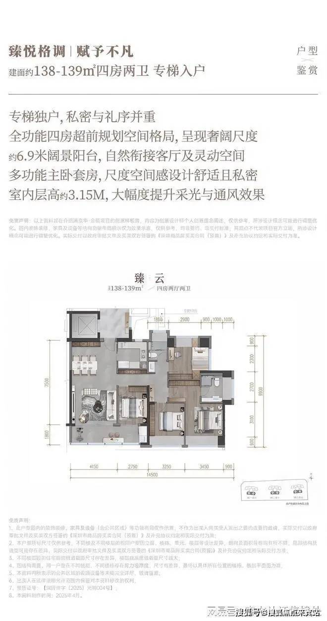 「满京华金硕臻府」推出1栋1/2/3单元,共420套房源,面积有138-139㎡的4房2厅2卫,202-204㎡的4房2厅3卫户型,作为光明顶豪楼盘,金硕臻府做到了一梯一户,专梯入户的奢阔大空间,3.15米层高,其中光明仅有的204平大户型基本是千万起步门槛,预计在2026年10月份交房,138平户型带精装交房,204平户型带简装交房。