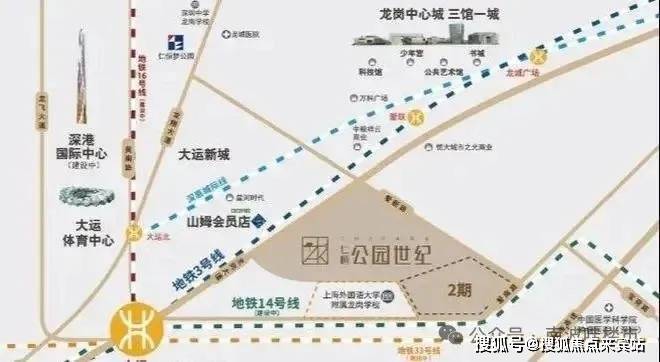 【大运枢纽站】规划4轨与此交汇。3-14-16号线(已开通)33号线(建设中中6站直达机场),乘坐14号线可8站至福田,实现龙岗与福田快速通达。仁恒公园世纪三期售楼处电话☎:400-150-5057