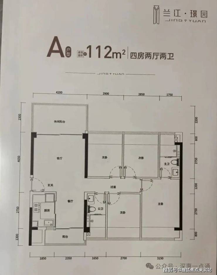112m²的4房2厅2卫,设计的竖厅南北通透格局,进门入户玄关,客厅4.2米开间,客餐厅分离化设计,南北双阳台,四开间朝南,动静分区,分别做到了主卧14.38m²/次卧11.58m²/次卧9.4m²/次卧7.62m²(实测面积,去掉墙体),U型厨房,卫生间三段式干湿分离,得房率约78.8%(不含赠送),客厅大阳台9.66m²西北朝向,看小区园林或东北师范学校。套内面积87.83m²+飘窗12m²+阳台6.36m²=实际套内106.19m²,加上赠送面积后得房率约94.72%。