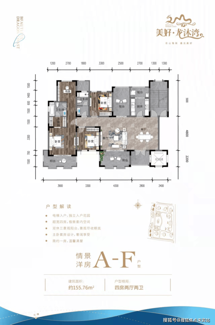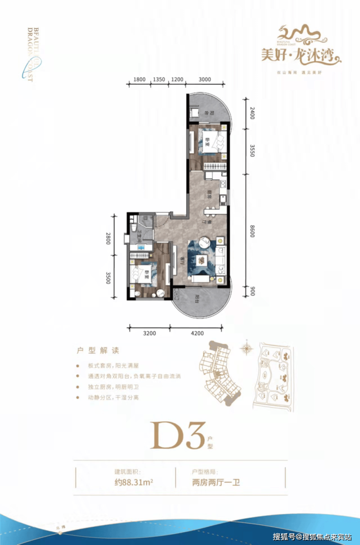 ④ 三房户型三面采光,空间方正合理,双独立明卫,270°环型瞰海阳台