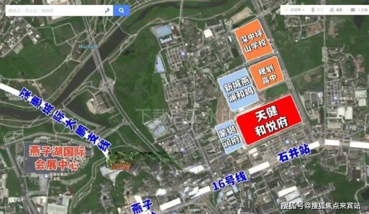 天健和悦府,位于深圳市坪山区石井街道,地处坪山“十四五”重点打造的燕子湖城市新客厅核心区域,定位为集产业服务、会展经济、生态宜居于一体的现代化片区。项目紧邻地铁16号线石井站(约200米),5站可换乘14号线快速直达福田中心区,同时周边环绕南坪快速、外环高速、沈海高速等主干道,并规划有深大城际、深惠城际大鹏支线等轨道交通,形成“双地铁+三高速+双城轨”的立体交通网络,大幅提升通勤效率。