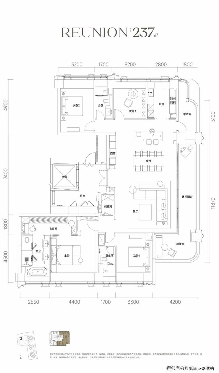 主力户型为197-235㎡大平层,主打T2/T3楼型。