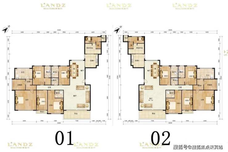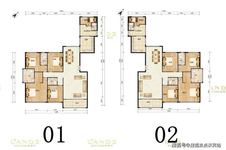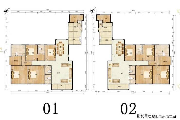 户型面积布局2300平四房两厅五卫