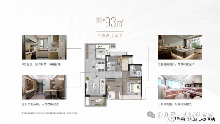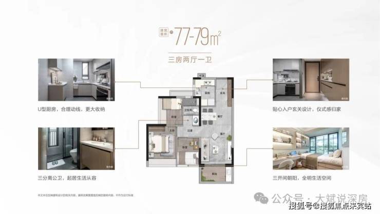 建筑面积约77-79㎡高能三房,空间体验优于市面同等面积户型,高效收纳体系,释放更多生活空间