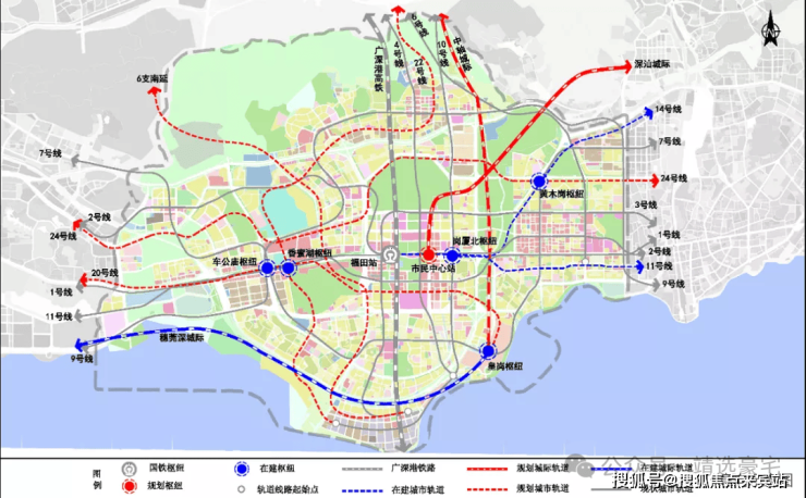→中心枢纽:综合枢纽中心——福田站