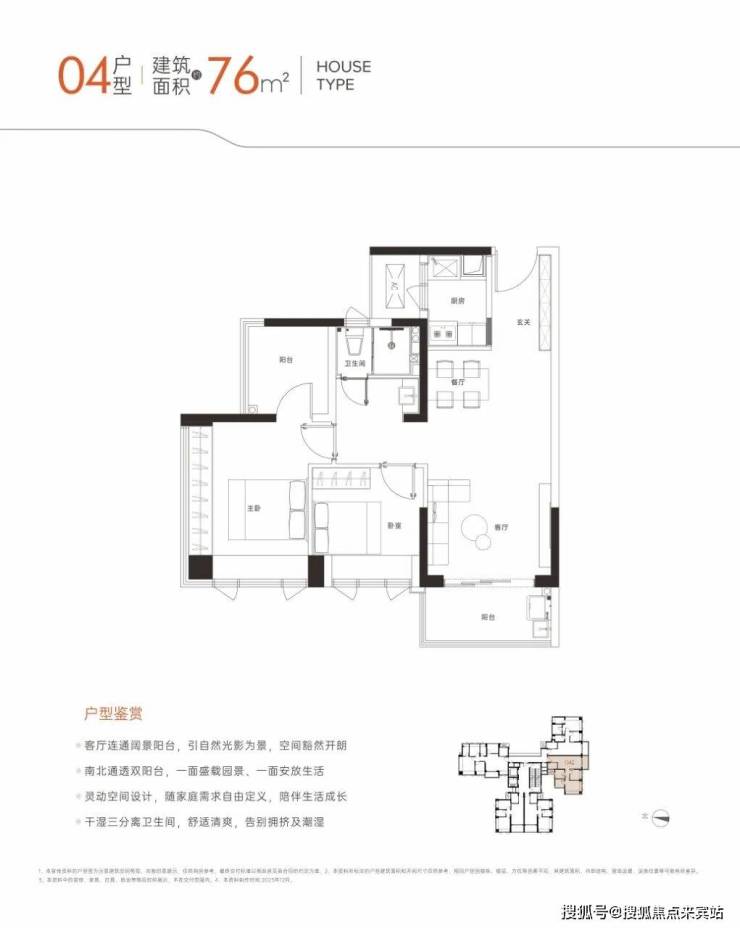 04户,约76㎡3房1卫