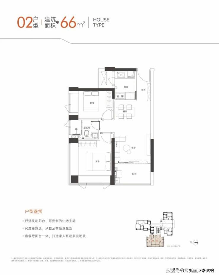 02.03户,约66㎡2房1卫