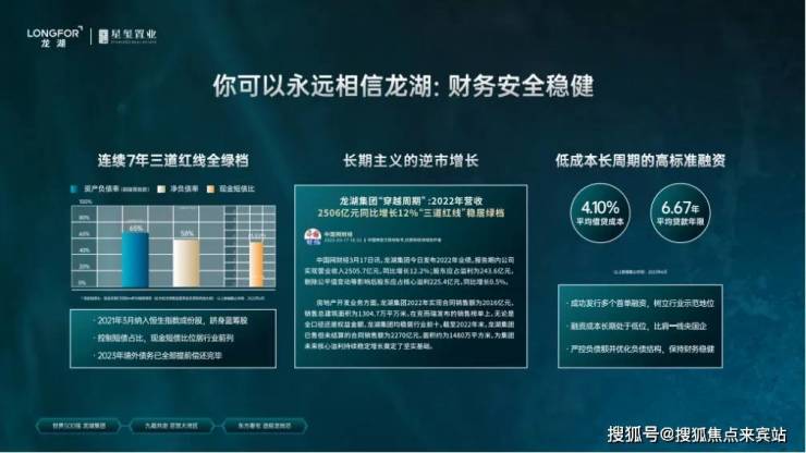 龙湖集团是一家世界五百强、全国前十强开发商,93年成立于重庆,目前总部在北京, 09年在香港联交所主板上市,龙湖业务涵盖广泛,拥有5大主航道业务,地产开发、商业运营、租赁住房、智慧服务、龙智造,并积极试水养老、产城等创新领域;布局全国高潜力城市群及都市圈,稳健的业务增长、高效的运营体系,让龙湖赢得了客户、政府、投资者以及同行的广泛认可;30年以来龙湖进驻了全国五大城市群,100余个城市,累计开发超1000个品质楼盘,园林景观更是业界标杆,拥有国家一级资质物业,使“龙湖生活”成为品质生活的代名词,口碑相传。龙湖的财务非常稳健-连续7年三道红线稳居绿档,为您的房产保驾护航