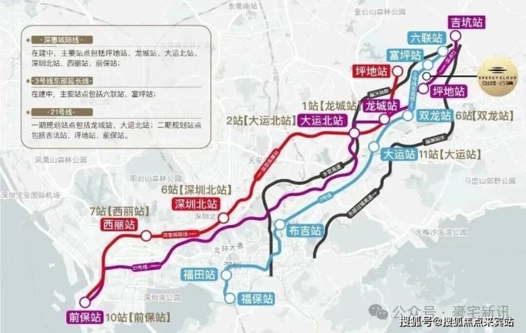 交通配套:创城云璞交通配套极为完善,地铁3号线东延线富坪站已开通,距离项目仅约200-300米,步行10分钟可达。乘坐3号线到大运站可便捷换乘14号线,30分钟直达福田中心区。深惠城际轨道线坪地站预计2026年11月开通,时速160公里,1站到龙城、2站大运北、6站到深圳北、7站到西丽、10站速达前海,实现"1小时湾区生活圈"。