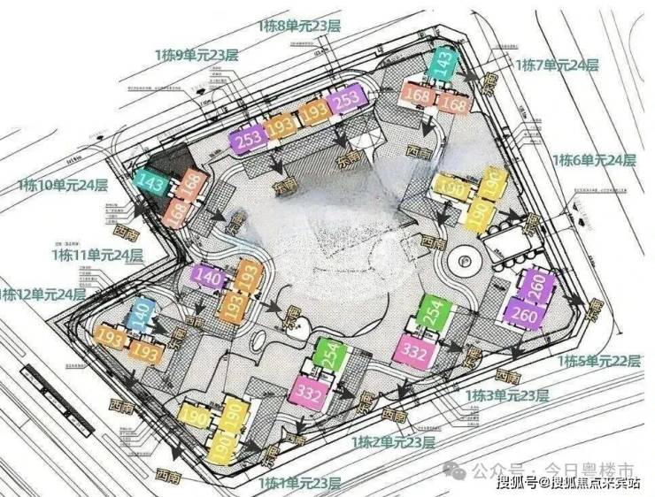 社区采用点式错位布局,实现户户朝南且视野互不干扰。住宅包含2梯2户板楼与3梯3户塔楼,层高22-24层。