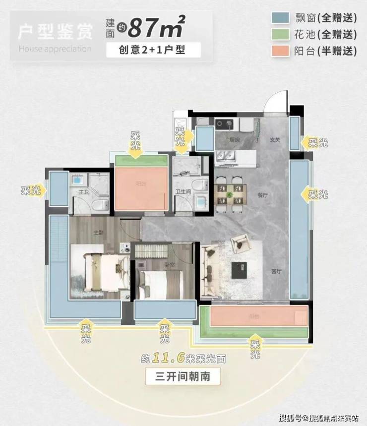 罕见三阳台赠送,拓延更大生活尺度