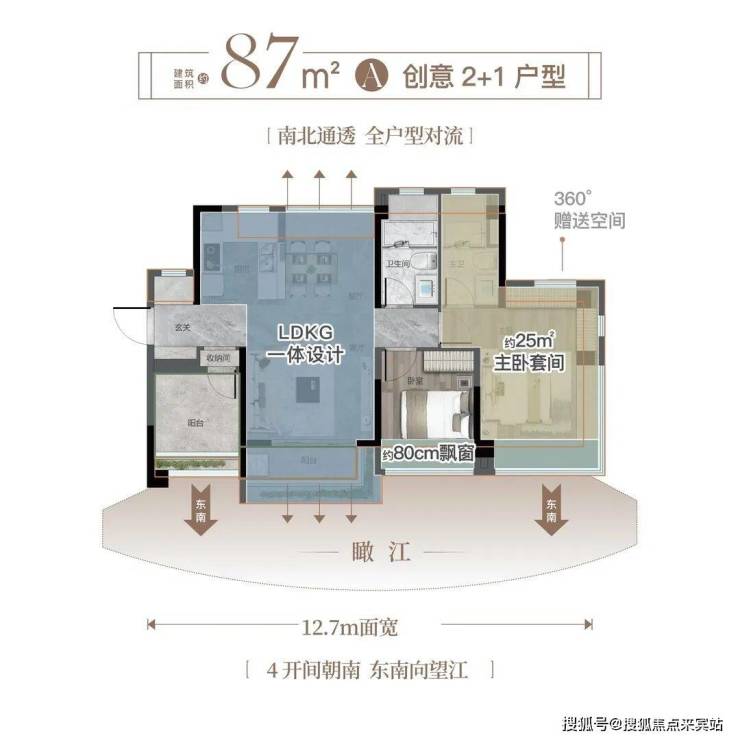 以一线江岸之境,匠造建面约87-132㎡瞰江藏品,全南向户型布局、超100%空间使用率,奢配80cm巨幕飘窗,独览一线江景与万象繁华。(部分户型配有)